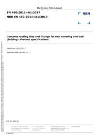 EN 490 : 2011+A1 : Concrete roofing tiles and fittings for roof covering and wall cladding - Product specifications.