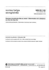 NBN EN 1128 : Panneaux de particules liées au ciment. Détermination de la résistance au choc de corps dur.