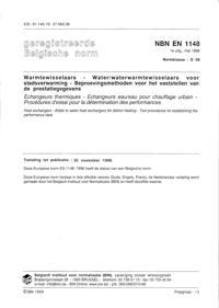 NBN EN 1148 : Warmtewisselaars - Water/waterwermtewisselaars voor stadsverwarming - Beproevingsmethoden voor het vaststellen van de prestatiegegevens.