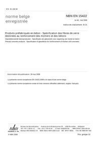 NBN EN 15422 : Produits préfabriqués en béton - Spécification des fibres de verre destinées au renforcement des mortiers et des bétons.