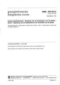 NBN EN 324-2 : Houten plaatmateriaal - Bepaling van de afmetingen van de platen - Deel 2: Bepaling van de haaksheid en de rechtheid van de zijden.