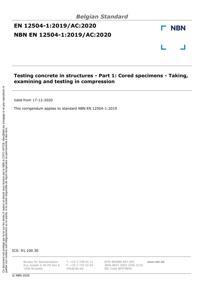 EN 12504-1 : 2019/AC:2020 : Testing concrete in structures - Part 1: Cored specimens - Taking, examining and testing in compression.