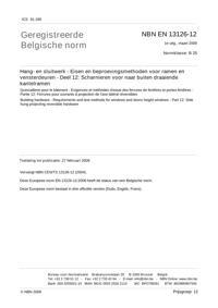 EN 13126-12 : Building hardware - Requirements and test methods for windows and doors height windows - Part 12 : Side hung projecting reversible hardware.