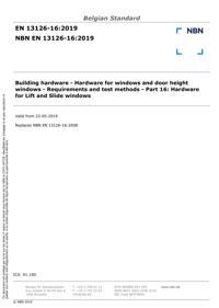 EN 13126-16 : Building hardware - Hardware for windows and door height windows - Requirements and test methods - Part 16: Hardware for Lift and Slide windows.