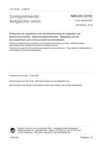 EN 13733 : Products and systems for the protection and repair of concrete structures - Tests methods - determination of the durability of structural bonding agents.