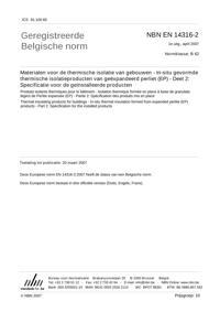 EN 14316-2 : Thermal insulating products for buildings - In-situ thermal insulation formed from expanded perlite (EP) products - Part 2: Specification for the installed products.