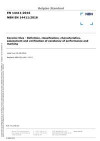 EN 14411 : Ceramic tiles - Definition, classification, characteristics, assessment and verification of constancy of performance and marking.
