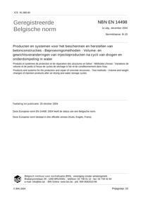 EN 14498 : Products and systems for the protection and repair of concrete structures - Test methods - Volume and weight changes of injection products after air drying and water storage cycles.