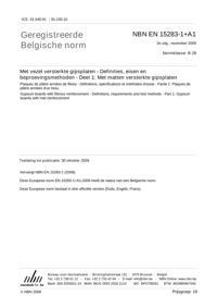EN 15283-1 : 2008+A1 : Gypsum boards with fibrous reinforcement - Definitions, requirements and test methods - Part 1: Gypsum boards with mat reinforcement.