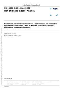 EN 16282-3 : 2016+A1:2021 : Equipment for commercial kitchens - Components for ventilation in commercial kitchens - Part 3: Kitchen ventilation ceilings; design and safety requirements.