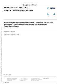 EN 16282-7 : 2017+A1:2021 : Einrichtungen in gewerblichen Küchen - Elemente zur Be- und Entlüftung - Teil 7: Einbau und Betrieb von stationären Feuerlöschanlagen.