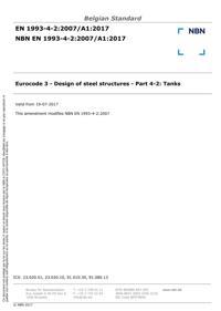EN 1993-4-2 : 2007/A1:2017 : Eurocode 3 - Design of steel structures - Part 4-2: Tanks.