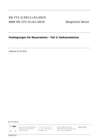 EN 771-2 : 2011+A1 : Festlegungen für Mauersteine - Teil 2: Kalksandsteine.