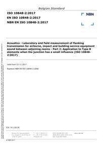 EN ISO 10848-2 : Acoustics - Laboratory and field measurement of flanking transmission for airborne, impact and building service equipment sound between adjoining rooms - Part 2: Application to Type B elements when the junction has a small influence (ISO 10848-2:2017).