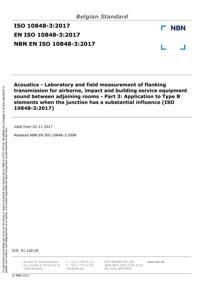 EN ISO 10848-3 : Acoustics - Laboratory and field measurement of flanking transmission for airborne, impact and building service equipment sound between adjoining rooms - Part 3: Application to Type B elements when the junction has a substantial influence (ISO 10848-3:2017).