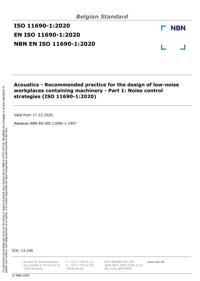 EN ISO 11690-1 : Acoustics - Recommended practice for the design of low-noise workplaces containing machinery - Part 1: Noise control strategies (ISO 11690-1:2020).