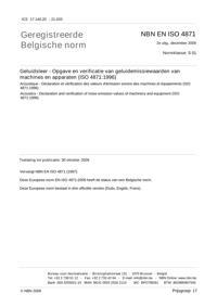 EN ISO 4871 : Acoustics - Declaration and verification of noise emission values of machinery and equipment (ISO 4871:1996).