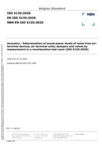 EN ISO 5135 : Acoustics - Determination of sound power levels of noise from airterminal devices, air-terminal units, dampers and valves by measurement in a reverberation test room (ISO 5135:2020).