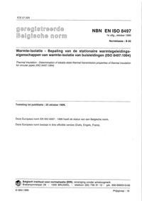 More informationNBN EN ISO 8497 : Isolation thermique - Détermination des propriétés relatives au transfert de chaleur en régime stationnaire dans les isolants thermiques pour conduites (ISO 8497:1994).