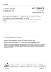 NBN EN 1158 /A1 : Quincaillerie pour le bâtiment - Dispositifs de sélection des vantaux - Prescriptions et méthodes d'essai (+ AC:2006).