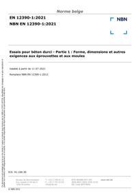 NBN EN 12390-1 : Essais pour béton durci - Partie 1 : Forme, dimensions et autres exigences aux éprouvettes et aux moules.