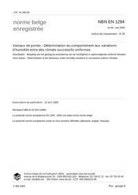 NBN EN 1294 : Vantaux de portes - Détermination du comportement aux variations d'humidité entre des climats successifs uniformes.