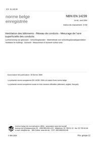 NBN EN 14239 : Ventilation des bâtiments - Réseau de conduits - Mesurage de l'aire superficielle des conduits.