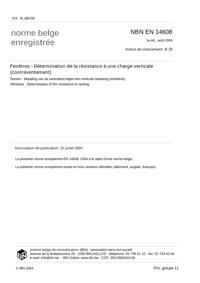 NBN EN 14608 : Fenêtres - Détermination de la résistance à une charge verticale (contreventement).