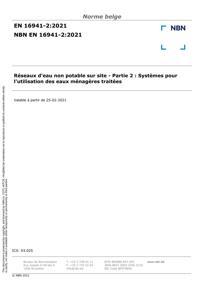 NBN EN 16941-2 : Réseaux d'eau non potable sur site - Partie 2 : Systèmes pour l'utilisation des eaux ménagères traitées.