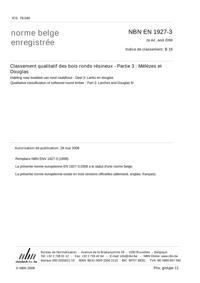 NBN EN 1927-3 : Classement qualitatif des bois ronds résineux - Partie 3: Mélèzes et Douglas.