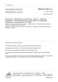 EN 1991-1-1 : Eurocode 1 - Actions on structures - Part 1-1: General actions - Densities, self-weight, imposed loads for buildings (+ AC:2009).