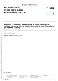 EN ISO 10140-1 : Acoustics - Laboratory measurement of sound insulation of building elements - Part 1: Application rules for specific products (ISO 10140-1:2021).