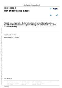 EN ISO 12460-5 : Wood-based panels - Determination of formaldehyde release - Part 5: Extraction method (called the perforator method) (ISO 12460-5:2015).