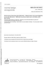NBN EN ISO 9972 : Performance thermique des bâtiments - Détermination de la perméabilité à l'air des bâtiments - Méthode de pressurisation par ventilateur (ISO 9972:2015).