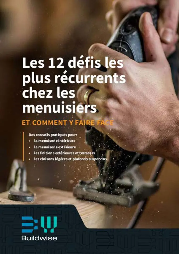 Notre guide pratique reprend douze défis techniques auxquels sont régulièrement confrontés les menuisiers professionnels. À travers quatre chapitres, nous abordons plusieurs problèmes et questions fréquentes liés à la menuiserie intérieure, à la menuiserie extérieure, aux finitions extérieures et aux terrasses ainsi qu’aux cloisons et aux plafonds suspendus. Vous trouverez dans ce guide des informations claires, concises et pratiques vérifiées par des experts indépendants. Notre objectif ? Partager les connaissances d’experts en construction avec l’expert que vous êtes aussi. Il ne reste plus qu’à vous retrousser les manches !