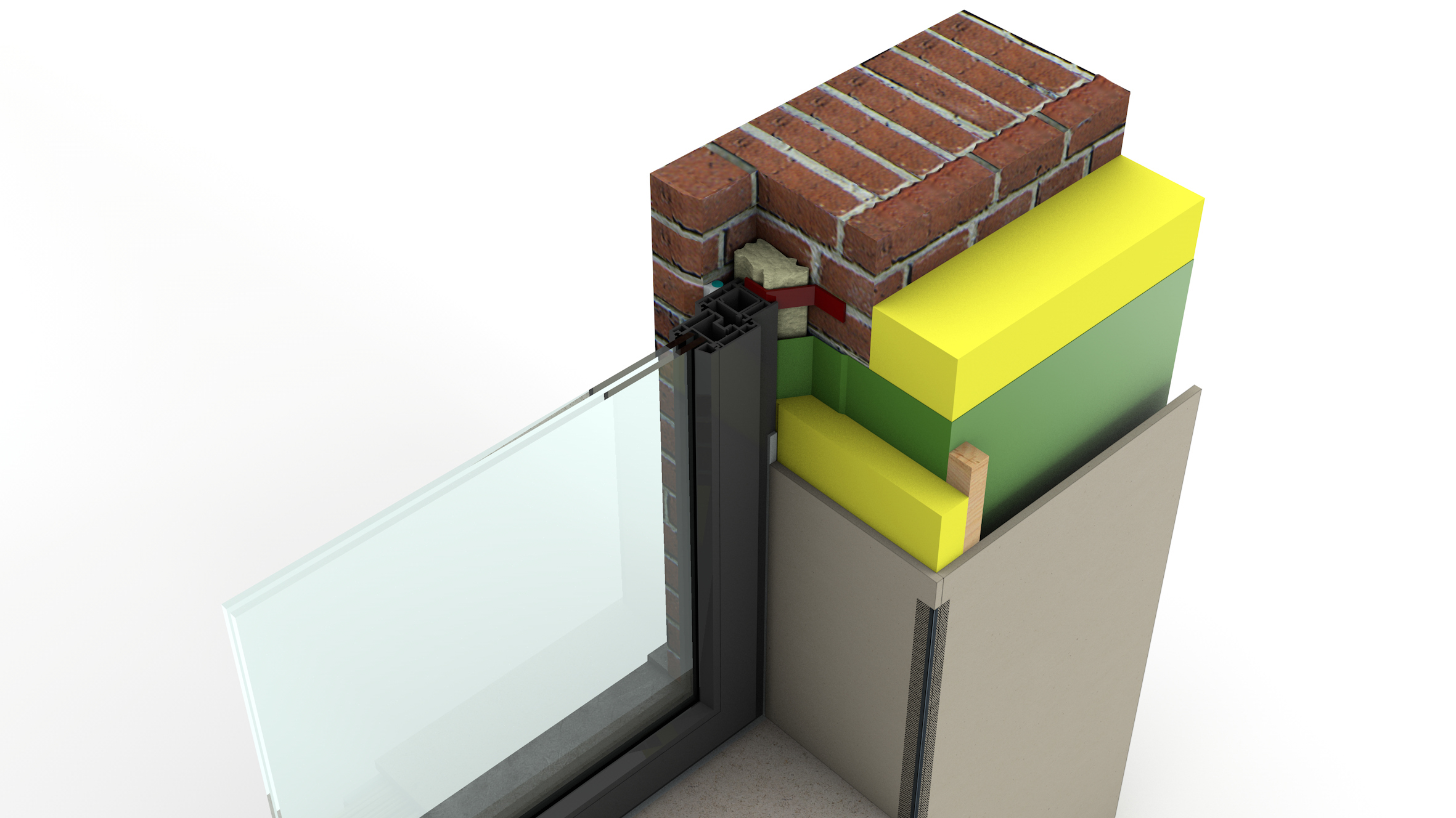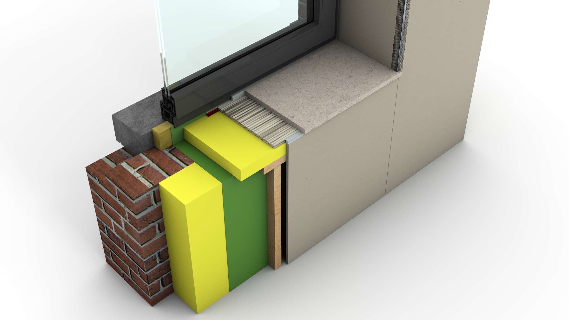 - il faut anticiper la connexion de manière à pouvoir la raccorder correctement au nouveau cadre de fenêtre à un stade ultérieur. Pour ce faire, on réalise le retour d'isolant avec une finition amovible, en utilisant par exemple des éléments démontables (au moyen d'un assemblage à vis au lieu d'un adhésif, par exemple) ;