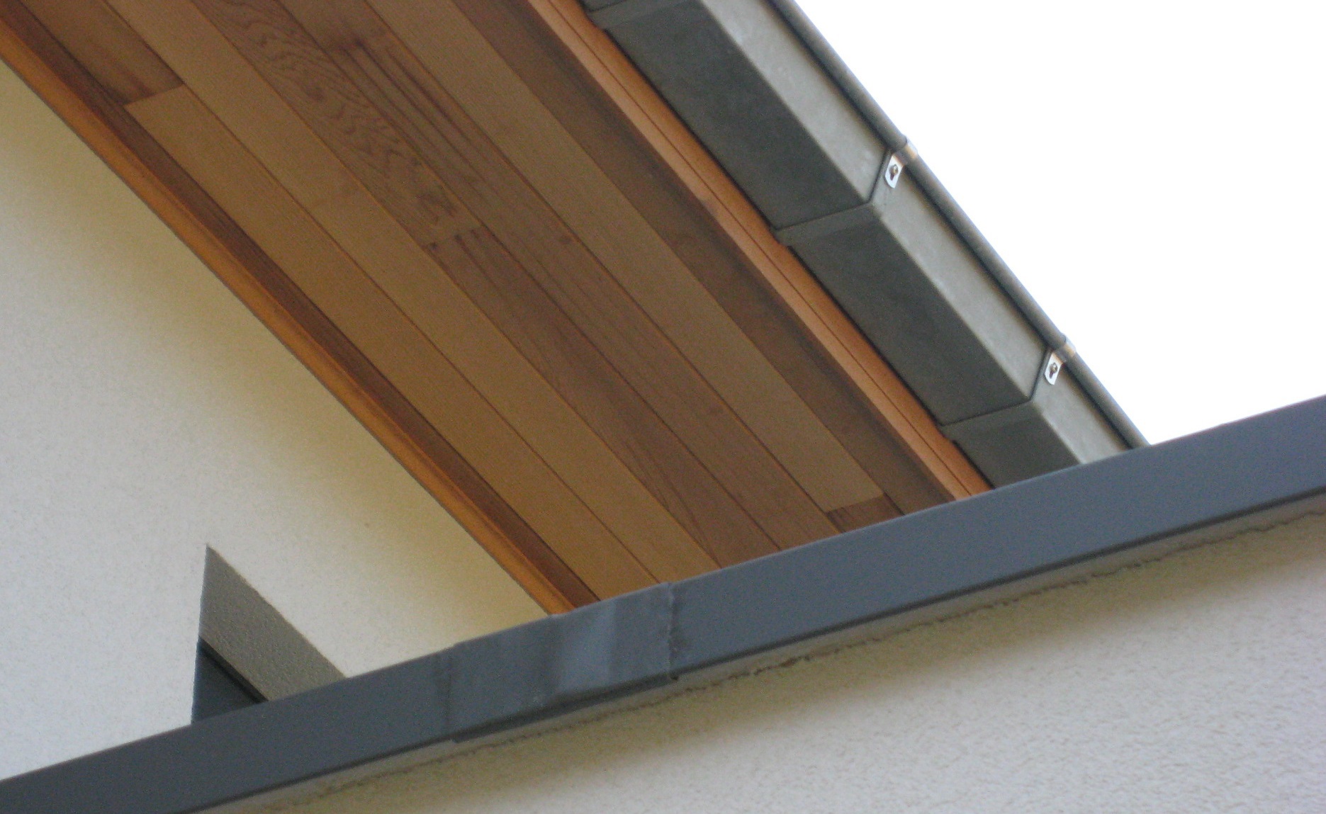 - Les joints des panneaux d'isolation appliqués contre la façade ne doivent pas coïncider avec la jonction entre le plancher de toiture et l'acrotère. Pour cela, il est recommandé de poser les panneaux isolants supérieurs verticalement sous la rive de toiture.