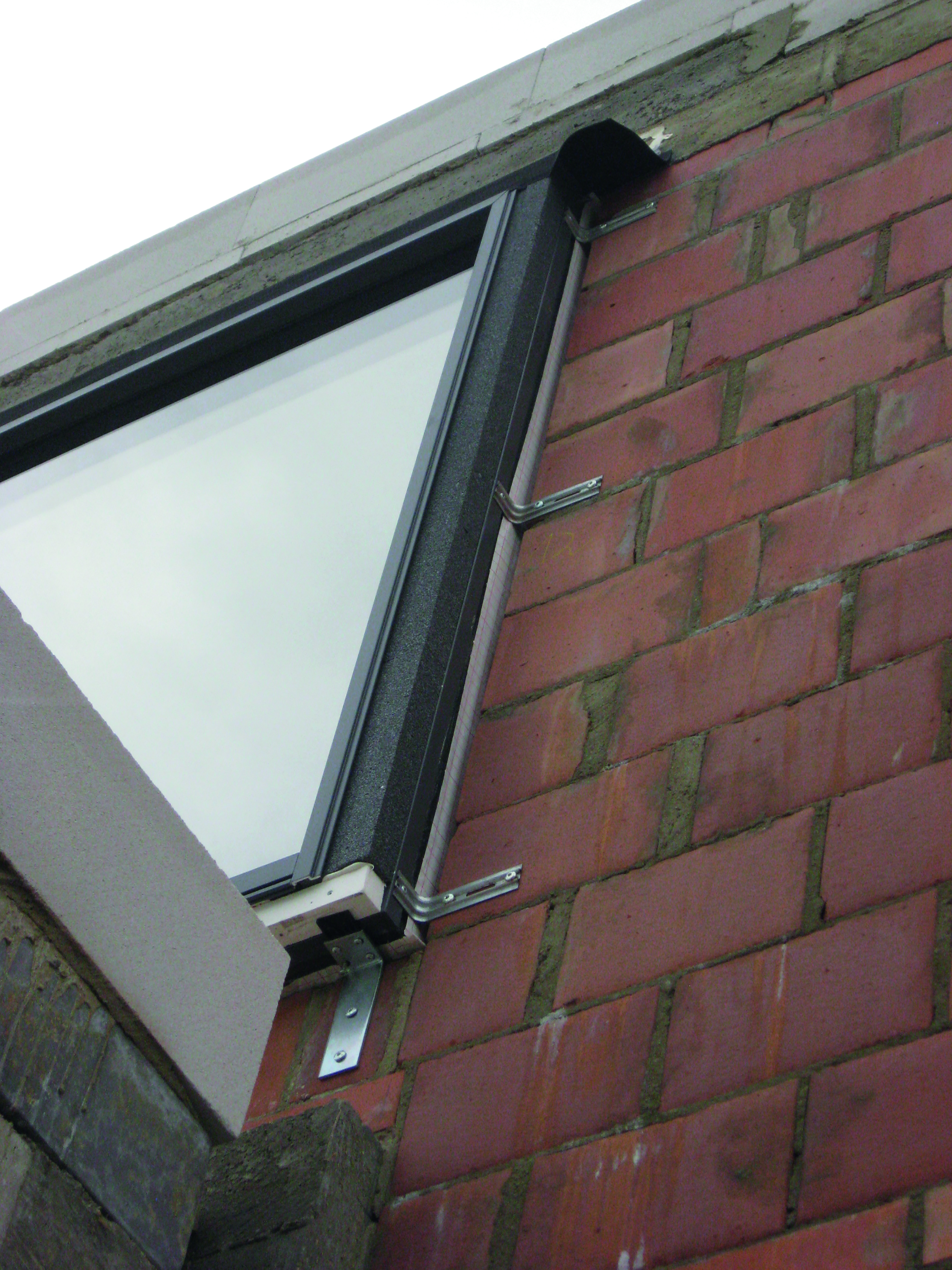 - Si l'épaisseur d'isolant est importante, les accessoires fixés au niveau du mur porteur ou des dormants de châssis (seuils, appuis et couvre-murs) doivent idéalement reposer sur une, voire plusieurs équerres de renfort afin de prévenir les effets du vent ou de charges localisées.