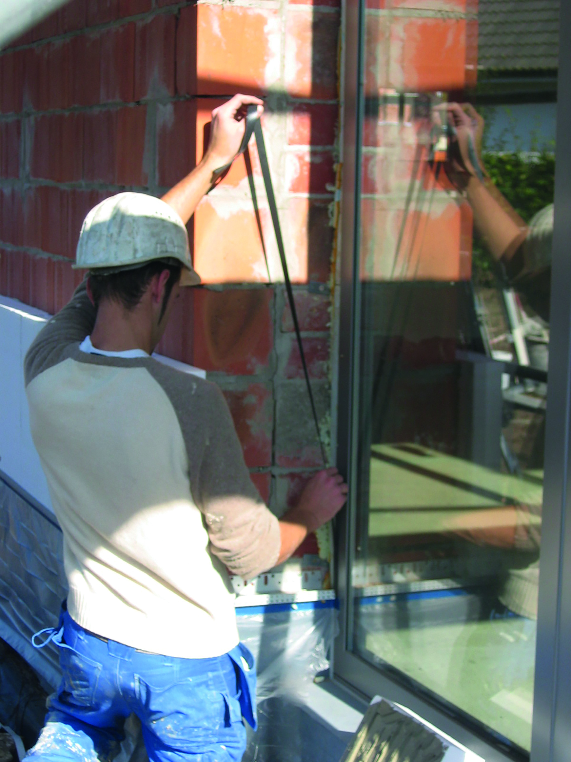 Les interstices entre la menuiserie (ou le précadre) et le mur doivent être comblés à l'aide d'une mousse expansible (nr. 10). Ces interstices résultent des inévitables écarts de planéité du mur.
