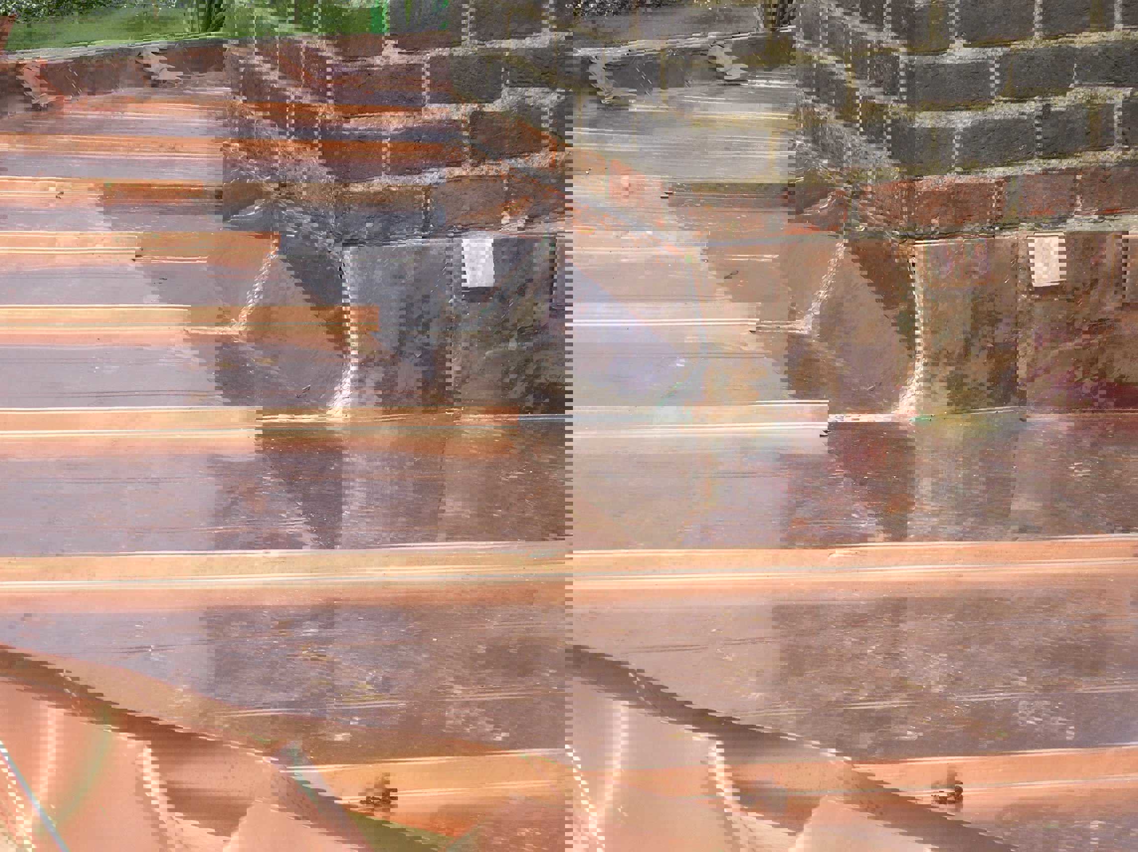 2. Fig. 2 : Pourtour de cheminée dans le cas d’une faible pente : joints couchés en amont