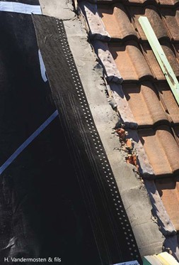 Il est donc préférable de dévier l’eau qui s’écoule sur les tuiles habillant la rive pour la ramener dans la gouttière du propriétaire de l’habitation concernée. Dans la pratique, on peut par exemple déplier à cet effet une bavette en plomb au bas du versant pour qu’elle serve de déflecteur.