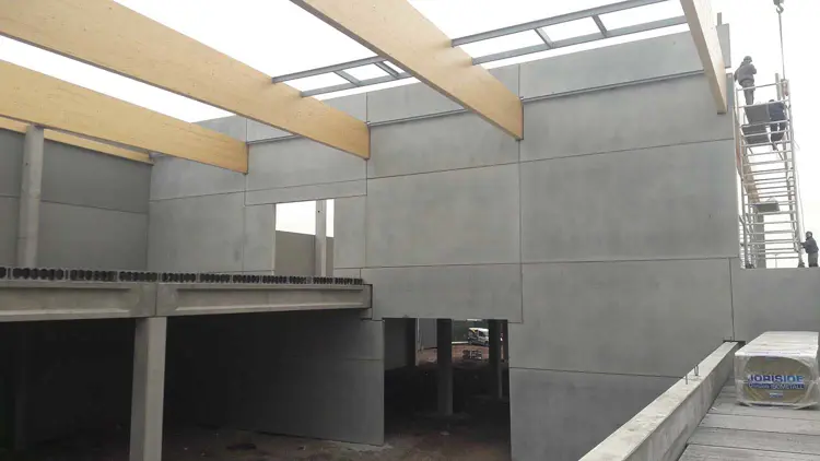Le projet concerne un bâtiment industriel à structure entièrement préfabriquée constituée de panneaux sandwiches isolés, de poutres lamellées, de poutres et de colonnes en béton, de poutres et de hourdis précontraints et de poutres en acier. Il se compose d'une partie « bureaux » et d'une partie « entrepôts ». La structure principale est en béton et en acier. Pour la couverture de toiture, on a toutefois opté pour une tôle d'acier reposant sur des poutres lamellées, reposant à leur tour sur des colonnes en béton. La majeure partie de ce projet comporte un étage intermédiaire sur lequel reposent des charges relativement lourdes. Pour ce projet, Abicon a assuré l'étude de stabilité, se chargeant par ailleurs des dessins de la structure en béton préfabriqué.