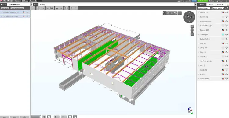Dans ce projet, la plus-value de l’utilisation du BIM présente plusieurs aspects. Tout d’abord, le dessin 3D en un modèle unique des différents éléments préfabriqués réduit considérablement la possibilité que des erreurs soient commises. Ensuite, le modèle 3D peut également faire office de dossier as-built. Un troisième avantage tient à la possibilité pour différentes parties de communiquer leurs propres modèles entre elles et de les consulter ou de continuer à travailler dans le même modèle. Enfin, un modèle 3D permet également de garantir des vérifications plus rapides, tout en favorisant leur exactitude. Les ajustements et communications en interne entre l’ingénieur et le dessinateur peuvent également être ainsi accélérés.