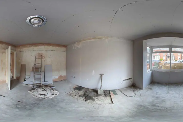 Armé d’une caméra à 360 degrés, il suffit d’appuyer sur un bouton pour photographier toute la zone environnante, y compris le plancher et le plafond. On gagne ainsi du temps par rapport à la caméra traditionnelle, qui ne capture qu’une petite partie de l’environnement par photo. Ces photos à 360 degrés sont donc utiles pour un relevé as-built rapide et permettent en outre d’effectuer des visites virtuelles de chantier.