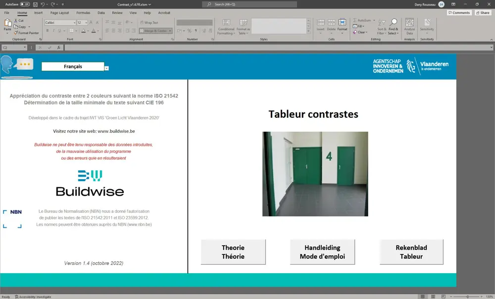 Après téléchargement, la feuille de calcul doit être ouverte avec Microsoft Office Excel. Il est nécessaire d’autoriser les modifications et d’activer les macros pour pouvoir utiliser le module.
