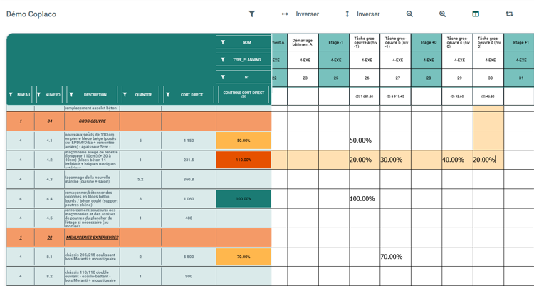 Il est relativement facile de créer un planning financier lorsque les données financières sont disponibles (dans le métré). Cependant, la structure du métré (titres et postes) ne correspond que rarement ou jamais à la structure du planning (résumé des tâches et sous-tâches). Coplaco résout ce problème et convertit les données du métré vers la structure d’un planning de projet.