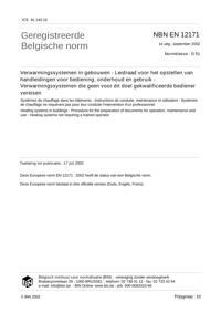 EN 12171 : Heizungsanlagen in Gebäuden - Betriebs-, Wartungs- und Bedienungsanleitungen - Heizungsanlagen, die kein qualifiziertes Bedienungspersonal erfordern.