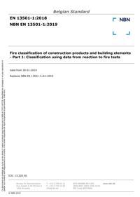 EN 13501-1 : Fire classification of construction products and building elements - Part 1: Classification using data from reaction to fire tests.