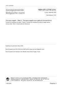 EN 13748-1 : 2004/A1 : Terrazzoplatten - Teil 1: Terrazzoplatten für die Verwendung im Innenbereich.