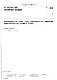 EN 196-10 : Prüfverfahren für Zement - Teil 10: Bestimmung des Gehaltes an wasserlöslichem Chrom (VI) in Zement.